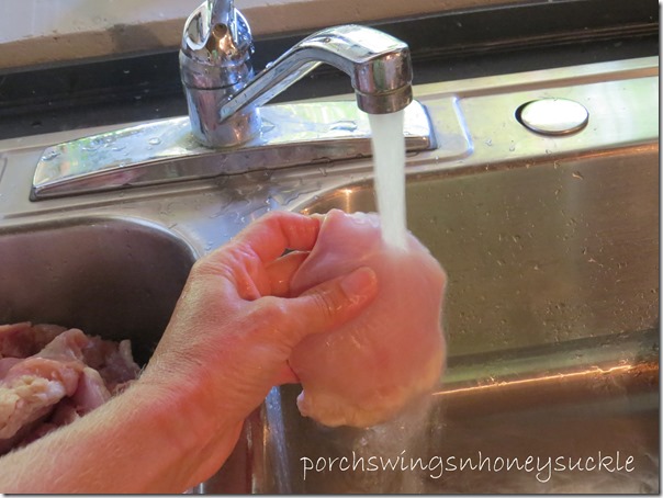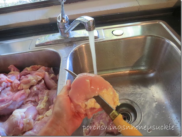 First I washed the thighs and cut most of them in half. I think they fit into the jars better if the pieces aren’t too big.